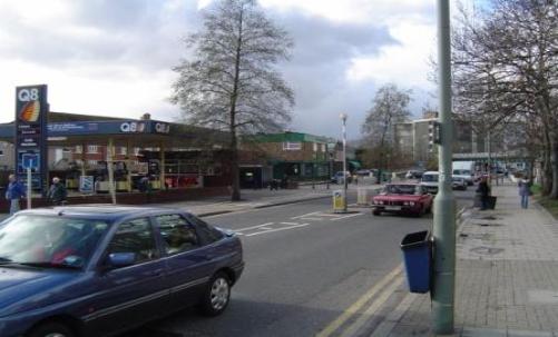 | This picture is of the site in 2004 and shows the extensive re-development on both sides of the road. The restaurant stood about half way up on the left. The 60's block in the far left background is on the site of the Mckenzie Road bomb which hit on th 30th June. Since this picture was taken further re-development has taken place |