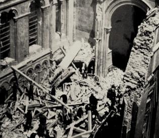 If the Nazis could have chosen a target none would have been better than the Guards Chapel. It was the home of the Royal Guardsmen based at the Wellington Barracks. The church was packed that morning with Guardsmen, and their families and friends. Just past 11.00 a.m. Just after the service started, the congregation heard a distant buzzing. It gradually grew louder and turned into a roar overhead which drowned out the hymn singing. The engine cut out and the V1 glided down and exploded on the roof of the chapel |