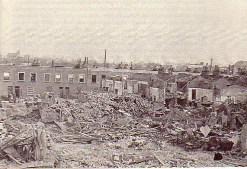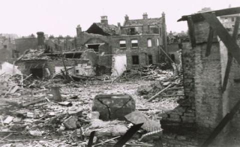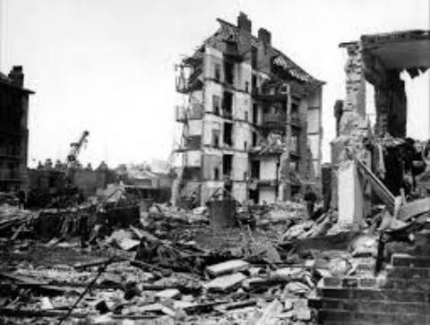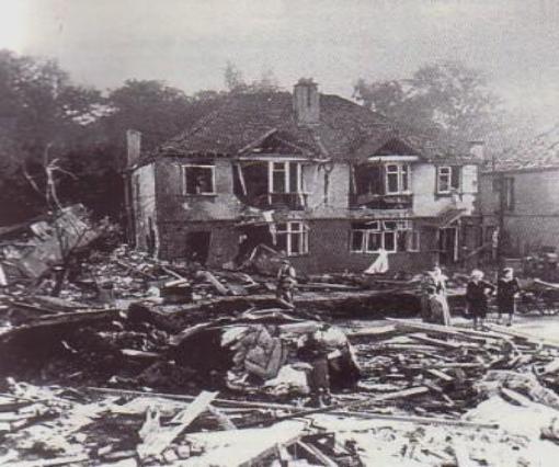 This V2 at 07.20 in the Morning was the last one to hit London and also one of the most deadly. It totally destroyed one of the blocks at Hughes Mansion. Residents were at home having breakfast and the death toll was 134. The majority of the victims were Jewish |