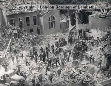 The Tragedy at Acre Lane opposite Lambeth Town Hall 28th June 1944 which killed 25 people. This image is reproduced with the kind permission of London Borough of Lambeth Archives Department |